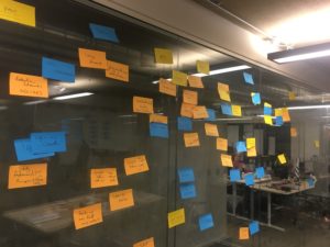 In the end we filled a wall with post-its, each post-it representing a sizeable project. The position of the post-it was significant in that the vertical axis being a sense of how valuable we thought the task would be, and the horizontal axis being a rough guess on how complex we considered it to be.