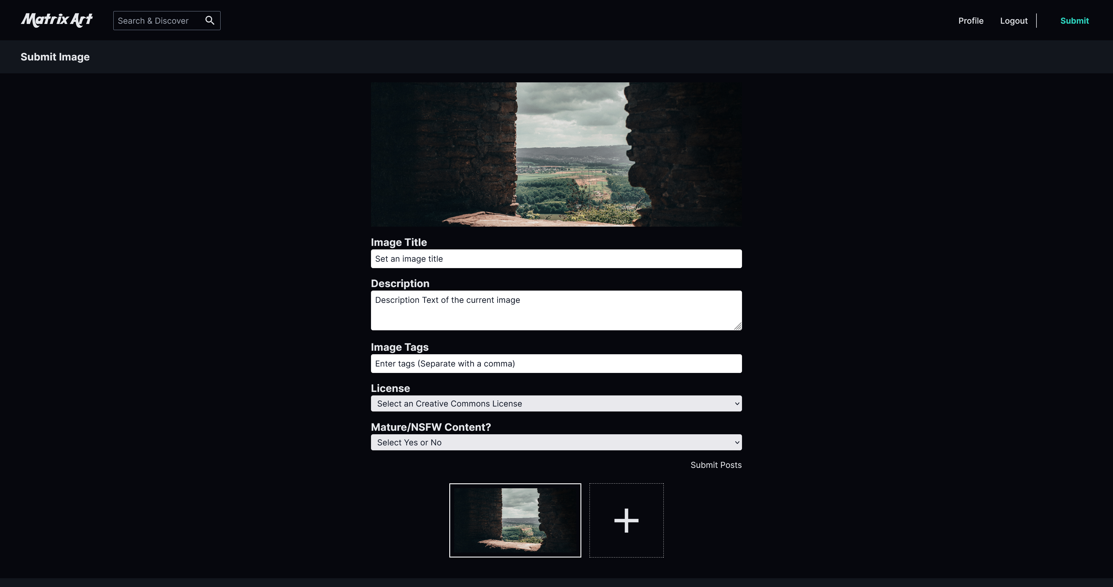 Matrix Art now supports logging in with any account (well-known not supported yet. You need to provide the full server address) and submitting images through the interface. You can now either just log in (No benefit though at this time as comments and follows are missing) or create a Matrix Art Profile.