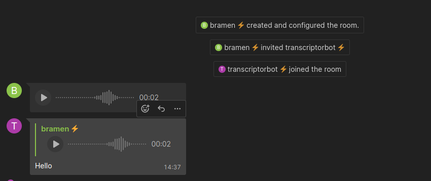 A very simple bot that can join a matrix account and listen to audio messages and use OpenAI's Whisper to convert what you say into text.