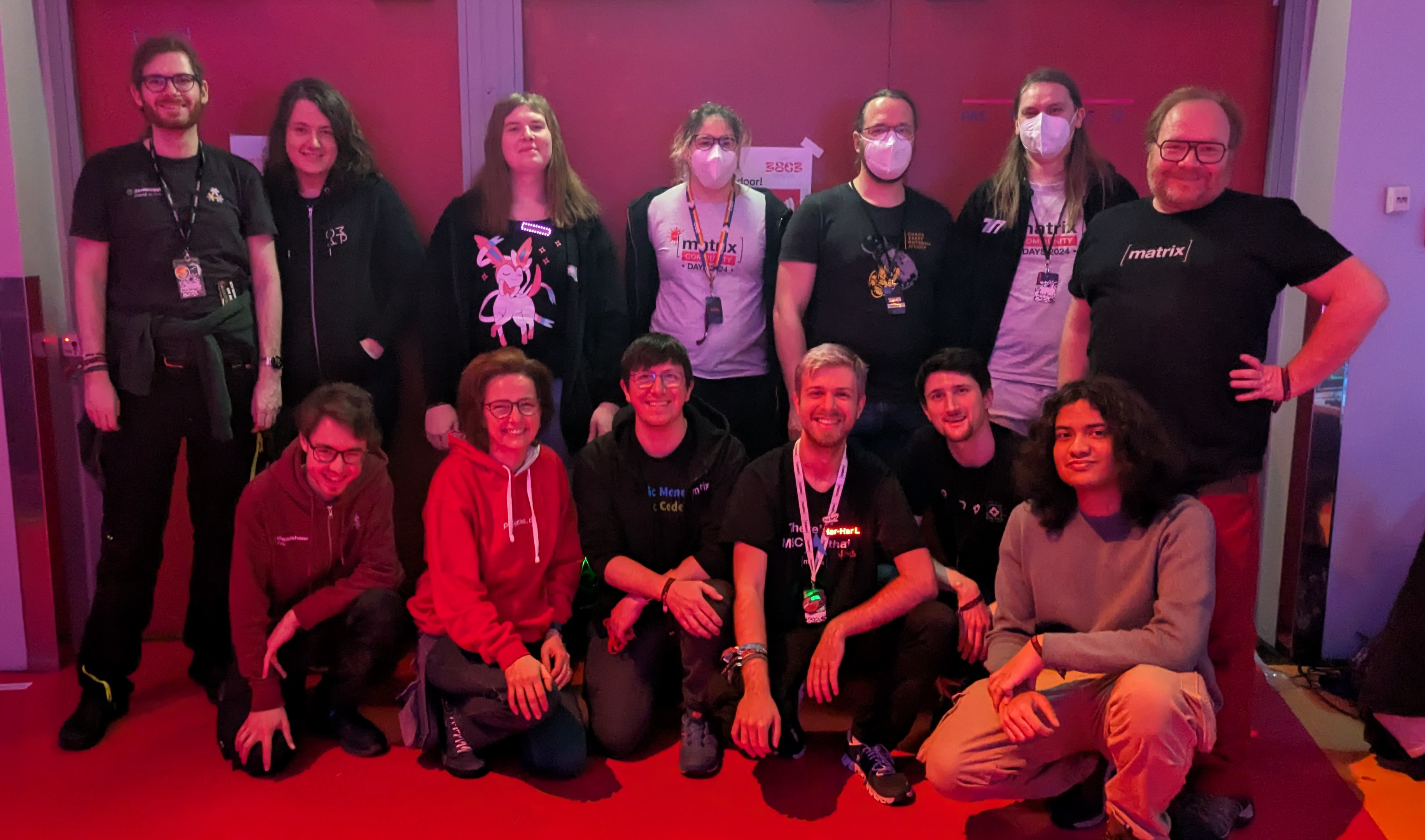 Dear TWIM, I'm writing you from the train back home after having visited 38C3 in Hamburg, the 38th edition of Chaos Communication Congress by the German Chaos Computer Club. Like yesteryear, #community-events:matrix.org organised the matrix community assembly there; you can imagine it as a kind of crossover of the Matrix #fosdem-2025-barcamp:matrix.org booth and a workshop area. We offered some "office hours" for people but many also dropped by around the clock with their questions, to get some of the official Matrix.org hoodies or T-shirts we could offer (thanks Thib for making this possible!), or simply to celebrate and socialise. We had a small assembly project driven by Nico who brought the materials to build an LED cube which once set up visitors could control through Matrix chat commands. As a small game, we hid small plastic rabbits around the whole congress center, which attendees could find and bring back to us to receive our wonderful assembly badge designed by Nadine. We also offered 2 workshops, one being another instance of Tune Your Chat, a project to collect all the neat small tips and tricks to tweak your Matrix experience, and for the other we were joined for a discussion by the creators of the "Standardised Messenger Audit – Frontend" catalog from the office of the German Federal Commissioner for Data Protection and Freedom of Information, published earlier this year. And of course we also took another group photo! If you are interested in joining us next time or for one of the many events we visit in the meantime, you can join #chaosevents:matrix.org specifically for appearances at CCC events or #community-events:matrix.org for even more.